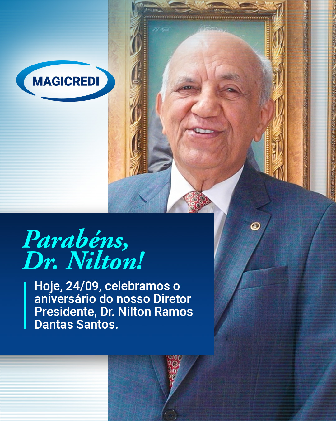 Hoje, 24/09, celebramos o aniversário do nosso Diretor Presidente, Dr. Nilton Ramos Dantas Santos. A MAGICREDI se alegra em prestar esta homenagem em uma data tão significativa. É uma honra compartilhar diariamente de sua energia, dedicação e amizade. Que este novo ciclo seja marcado por saúde, realizações e muitas conquistas. Feliz aniversário!